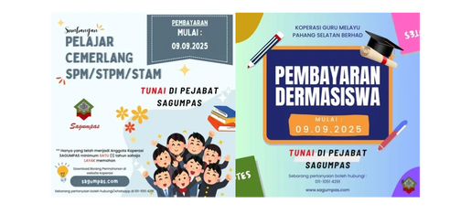 PEMBAYARAN SUMBANGAN PELAJAR CEMERLANG 2025 SECARA TUNAI DI PEJABAT SAGUMPAS BERMULA 09.09.2025.