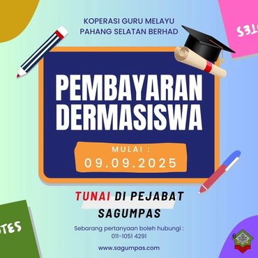 PEMBAYARAN DERMASISWA 2025 SECARA TUNAI DI PEJABAT SAGUMPAS BERMULA 09.09.2025.